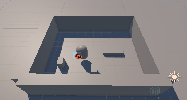 これでシーンビューを見ると、青いメッシュ(NavMesh)が生成されているはずです。