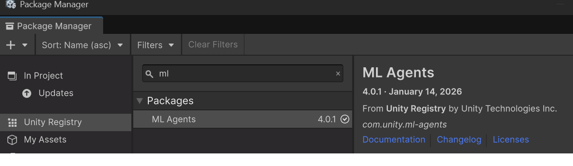 1-3. ML-Agentsパッケージのインストール