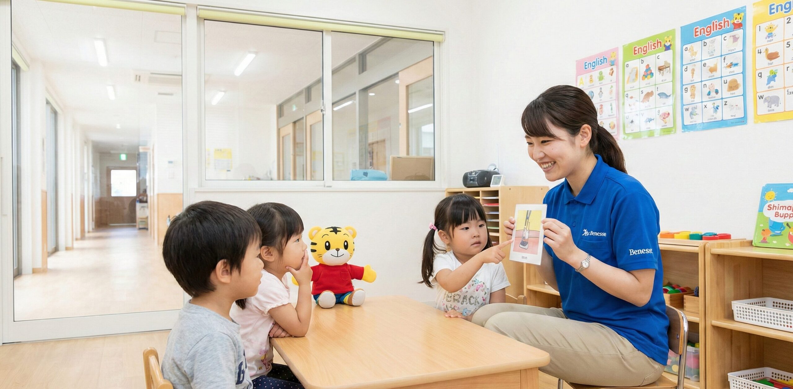 幼児期の子供にとって「知っているキャラクターがいる」という安心感は絶大です。 ビースタジオの教材には、しまじろうが登場(※コースによる)。「しまじろうが英語を話しているから、僕も!私も!」と、子供が自発的にレッスンに参加したくなる動機づけが強力です。