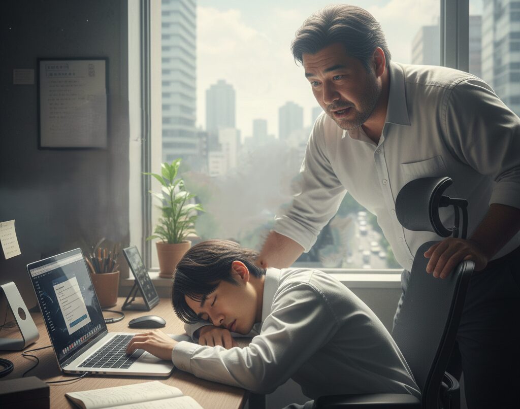 眠気と戦いながらパソコンをぼんやり見つめている。